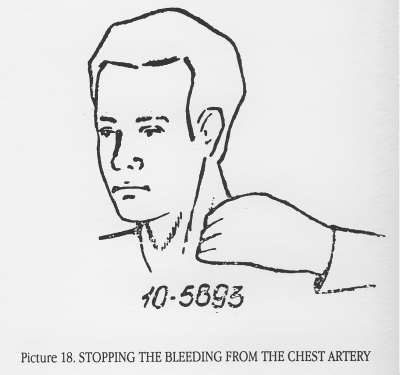 - Picture 19: The stopping of bleeding by bending the extremity.