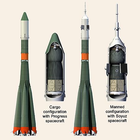 The Soyuz rocket variants are of the R-7 rocket family, originally developed from the R-7 ballistic missile, which first flew in 1957. To date, three variants of the Soyuz rocket have been used to launch Soyuz crewed and Progress unmanned cargo ships in support of the Russian manned space program: the Soyuz-U, the Soyuz-FG and the Soyuz-2.1a.
