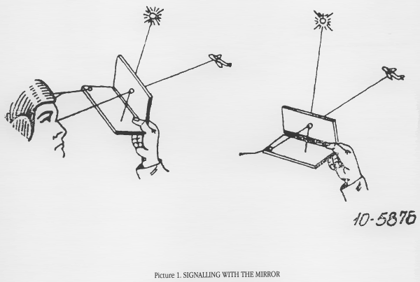 Another effective signal device is the special signal mirror, but only in sunny weather (Picture 1). Periodically, pass the signal mirror along the horizon. Sometimes search aircraft can see you much sooner than you can see or hear them.