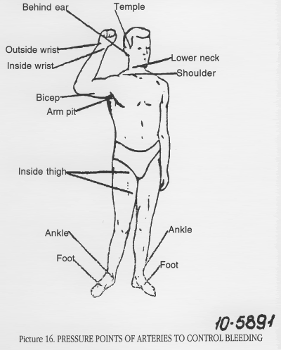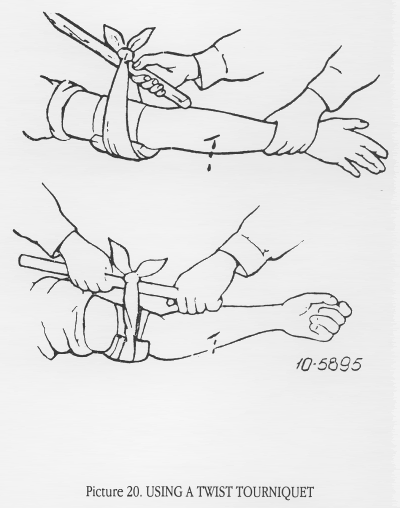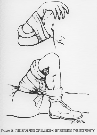 - Picture 19: The stopping of bleeding by bending the extremity.