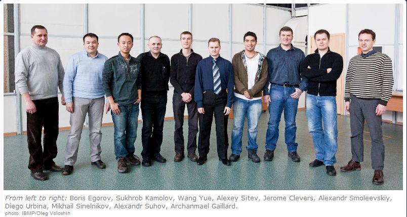 The Mars-500 finalists were also announced yesterday. They are, from left to right and top to bottom in the photo (from the IMBP page): Sukhrob Kamolov (Russia), Romain Charles (ESA), Diego Urbina (ESA), Wang Yue (China), Aleksei Sitev (Russia), Aleksandr Smoleevskii (Russia), Mikhail Sidel’nikov (Russia). The mission begins 3 June 2010, and ends in November 2011. Each participant will recieve 3 million rubles (nearly USD$100,000).