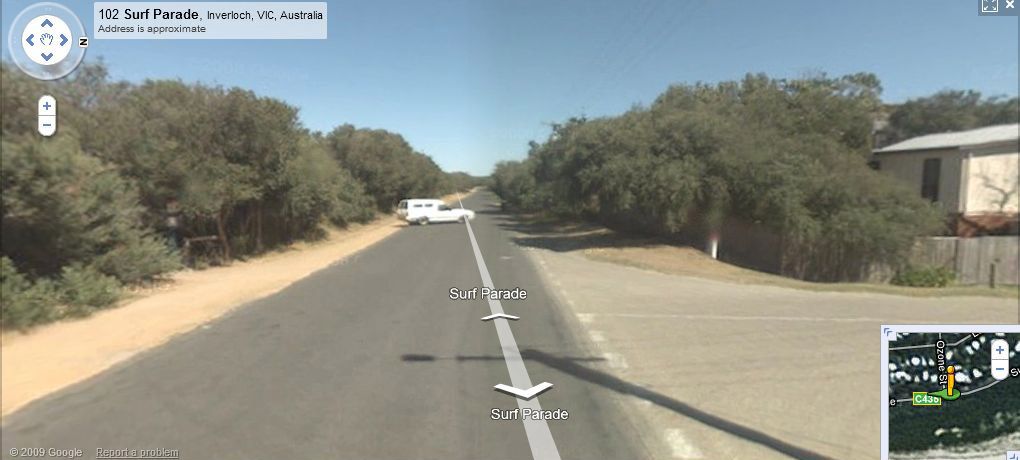 Google Maps view: the house, or houses, were accessed by Ozone St. (off Surf Pde.) I think they were somewhere along Lohr Ave. but can’t recall the exact house. Looking through Street View, it hasn’t changed too much. Here is a screenshot of a Google Street View, looking west; Ozone St. is to the right (it’s brick-paved, not asphalted), the beach is over the scrub to the left.
