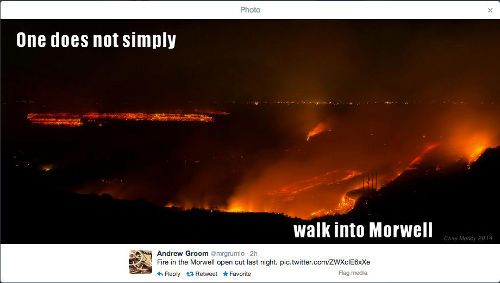 A coal mine in the Victorian town of Morwell has been burning for a couple of weeks. The first thought that came to my mind when looking at some photos is that it should be renamed to Mordor! The night photos look spectacular, but the toxic fumes have been polluting the nearby town.