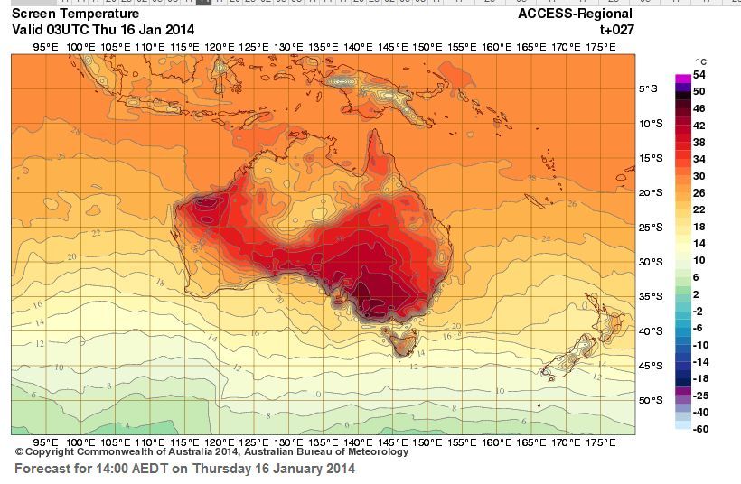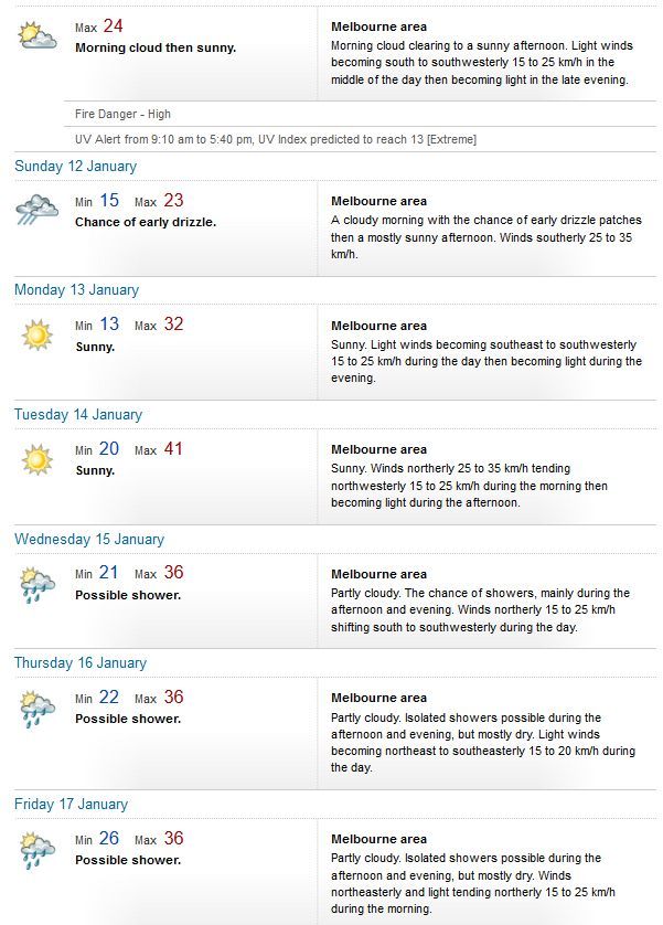 Parts of Australia are enduring an unpleasant heatwave – temperatures over 40°C in South Australia (almost 50°C!) and Queensland. Melbourne has been spared this time at least.
