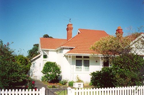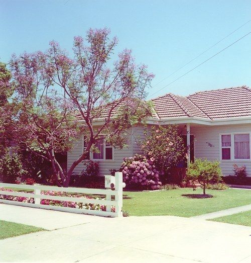 My maternal grandparents’ home, where they lived from 1941 to 1997 (Grandpa died in 1982). This was also a weatherboard. I am not sure of the style or construction date; it looked closest to the Federation Bungalow style, perhaps built in the 1930s. It was my family’s “second home” as it was only about 15 minutes’ drive away from my parents’ house, so we spent a lot of time there. It was sold in 1997 after Gran had to go into a nursing home, and a developer demolished it and built 4 townhouses there. I miss the house very much, and dream about it a lot.
