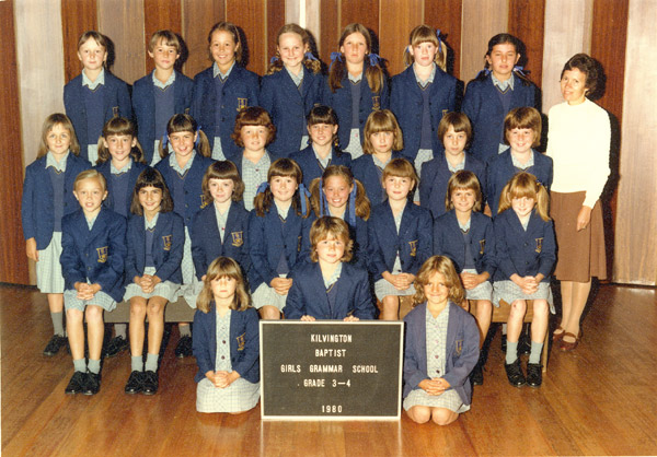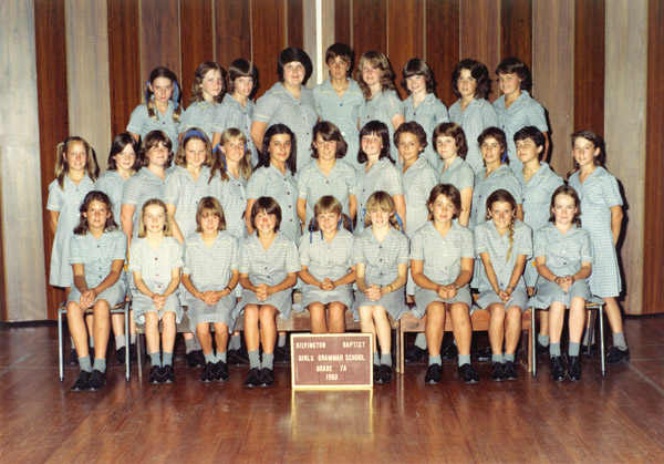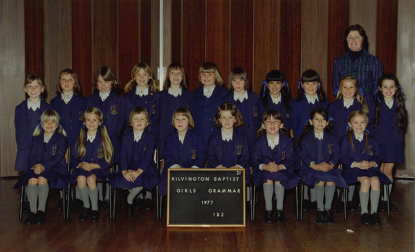 - Kilvington Baptist Girls’ Grammar, 1977, Years 1 & 2. First row, seated third from right. All subsequent photos are at Kilvington, where I spent all my school years. (Teacher in photo: Mrs. A. C. Flowers.)