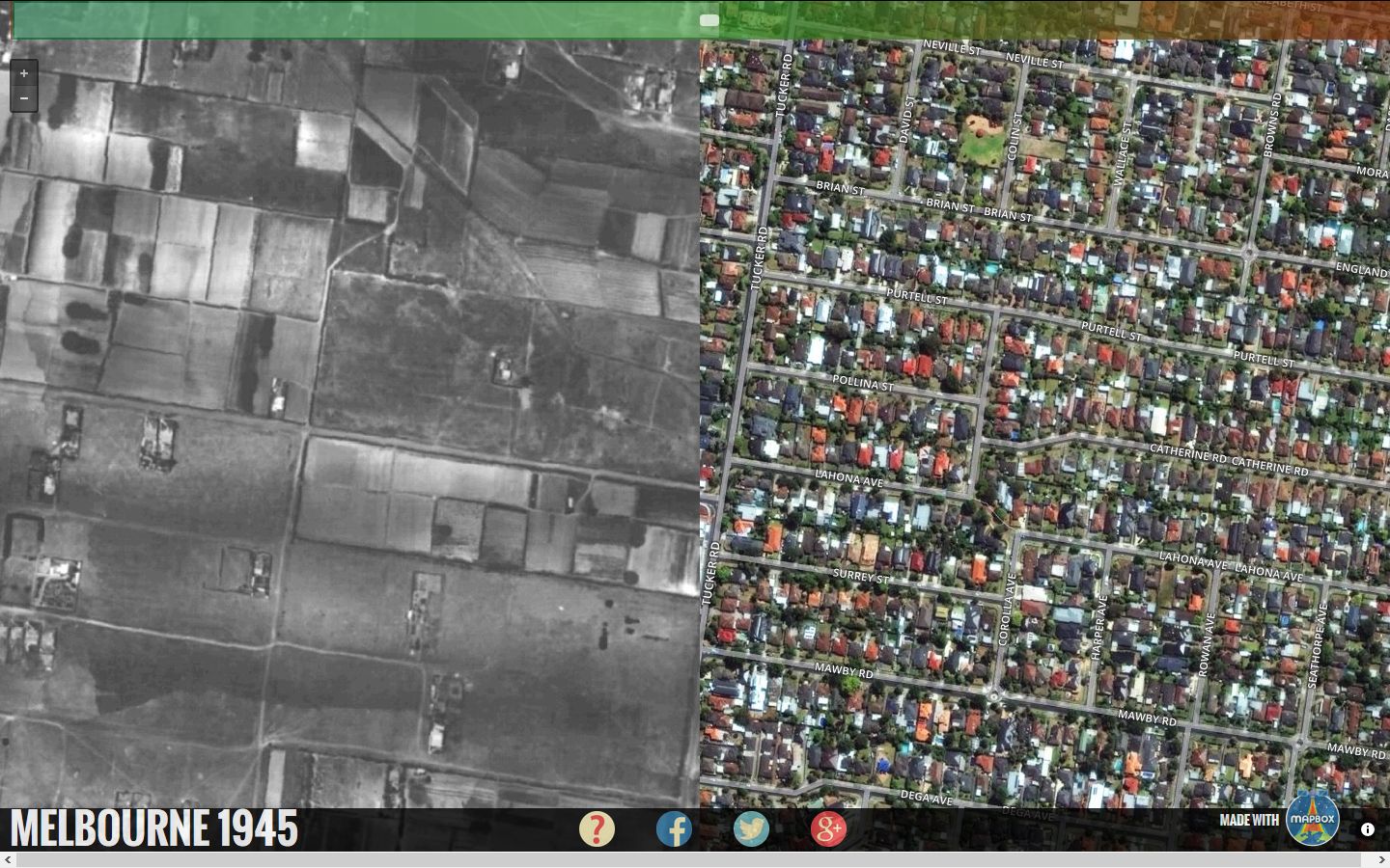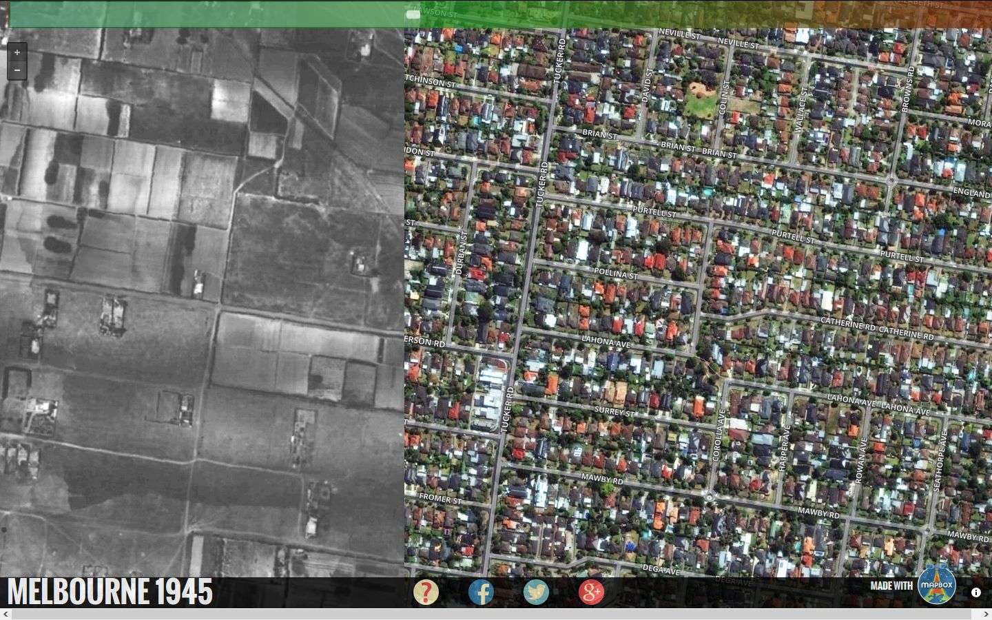 Someone at the Reddit r/Melbourne forum made up a map from images of Melbourne in 1945 and recently (around 2014). Looking through it I can see where my parents’ home would be build later in that decade – still open paddocks there – and also where Gran’s home is in 1945, though the resolution unfortunately is not very detailed. Screenshot links – 93 Tucker Road Bentleigh: 1 2 3 and 14 Bridge Street Elsternwick: 1 2 3