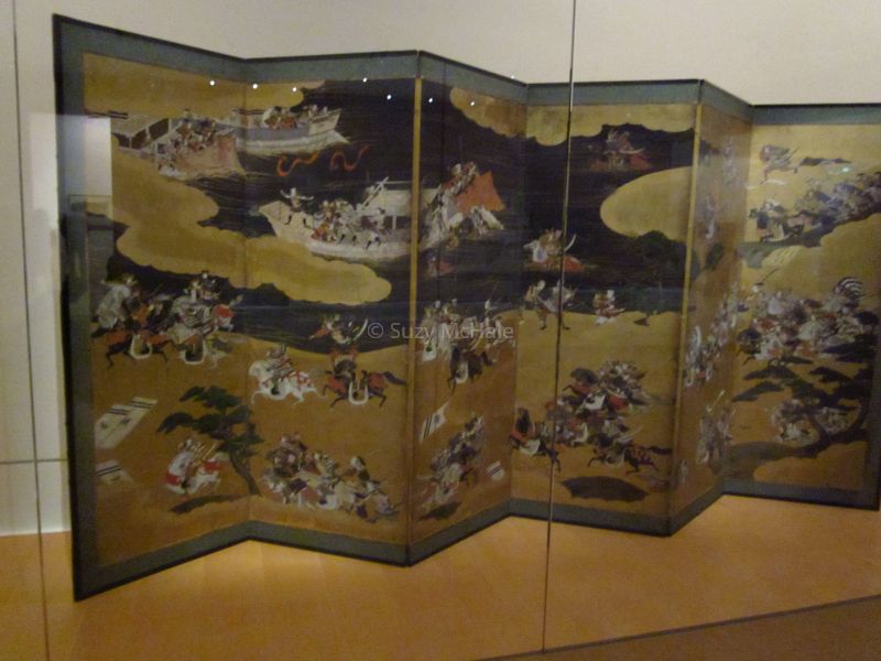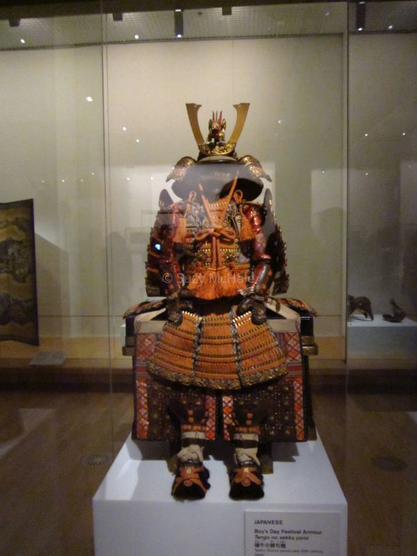 On 15 September 2014 (Journal entry) I went to see an exhibition at the National Gallery of Victoria, “Bushido – Way of the Samurai.” It was small – in one room – but the exhibits of swords, armor and accessories were exquisitely-made. I took some photos but they were rather murky as I couldn’t use the flash. An irritation were the hordes of noisy schoolchildren wandering around – if I go to another exhibit in future I will have to go on weekends or during school holidays! This was the first time I had visited the Gallery (or any museum) since my teenage years.