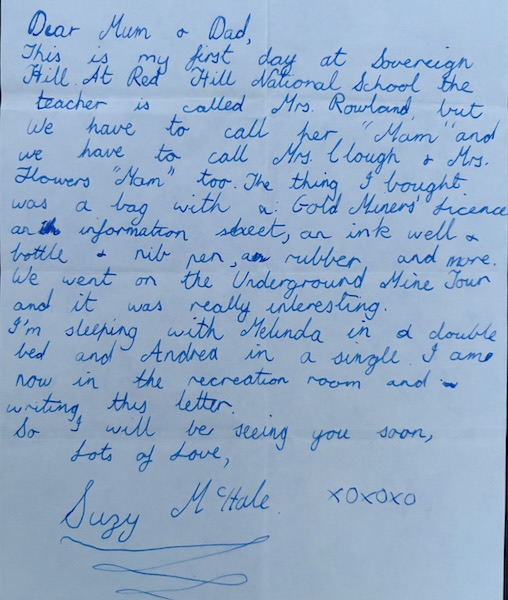 - 1981, Year 5: Sovereign Hill, Ballarat. This included a Costumed School Program where we were dressed as schoolchildren in period costume and experienced life as them in the 1850s. I also recall being given a tour of a mineshaft. I still have a short letter I wrote to my parents during my stay: