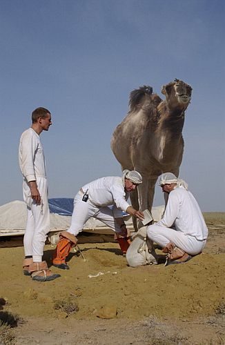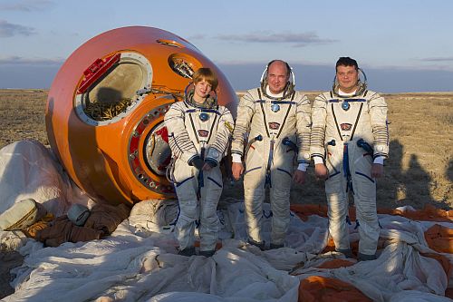 A mock crew of Aleksandr Gorbunov, Alexei Zubritskii and Aleksandr Grebenkin completed their training in the desert. According to the conditions of the test, their descent vehicle deviated from the calculated landing point and landed in a place where the search and rescue forces could only reach after two days.