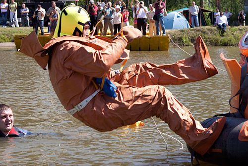 There are hydraulic combination suits (3 pcs stowed in one soft package) which are individual survival aids in case of the CA water surface splashdown. The suits have two eye-loops each to enable the crewman to be lifted from the water surface on board the hovering helicopter.